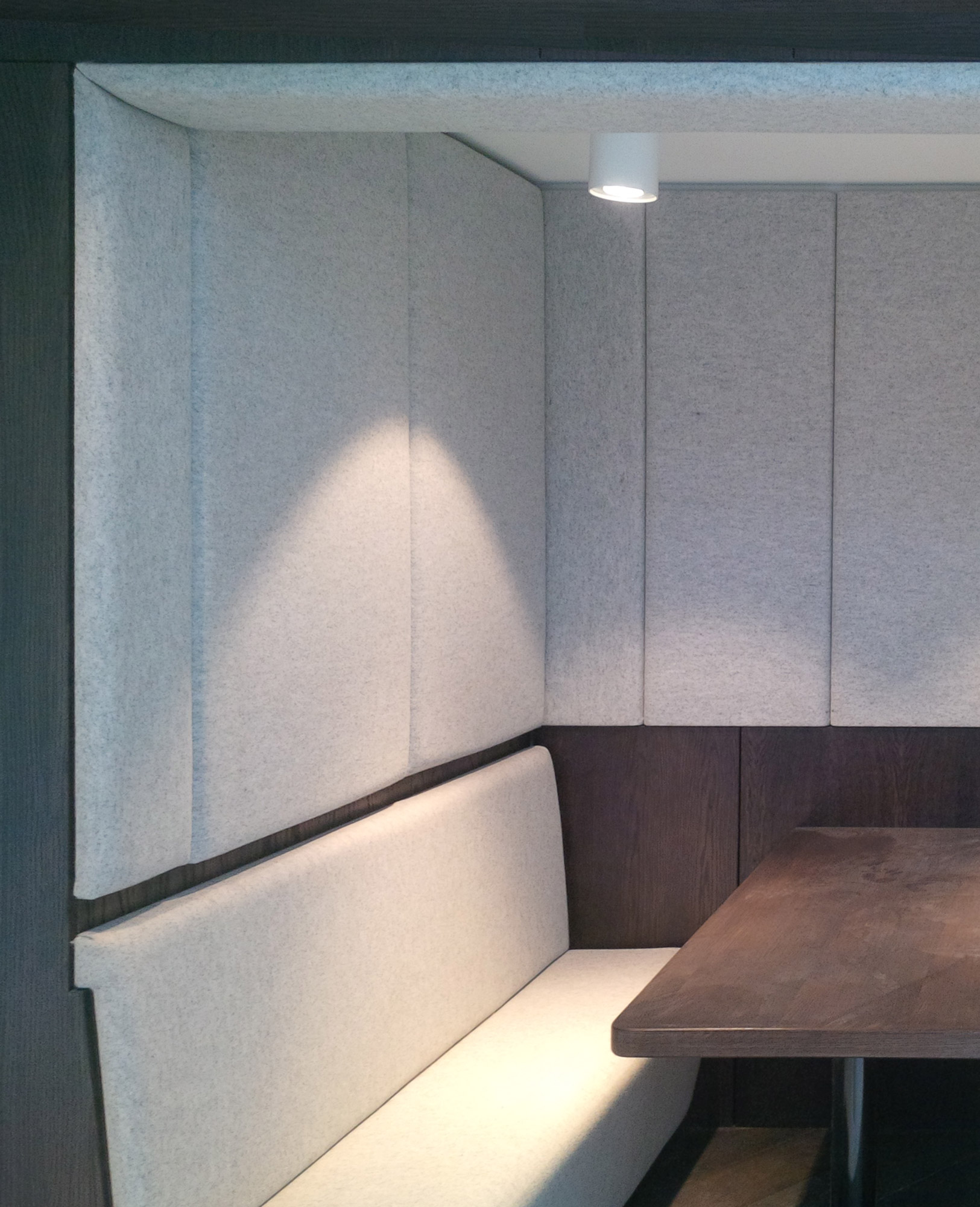 Including a range of meeting spaces from a large seminar room to intimate booths, and a flexible breakout space for events, the design uses a relatively monochrome colour palette which is given richness by the quality of the materials - oak flooring, felt-lined booths, metal mesh ceilings to key spaces.