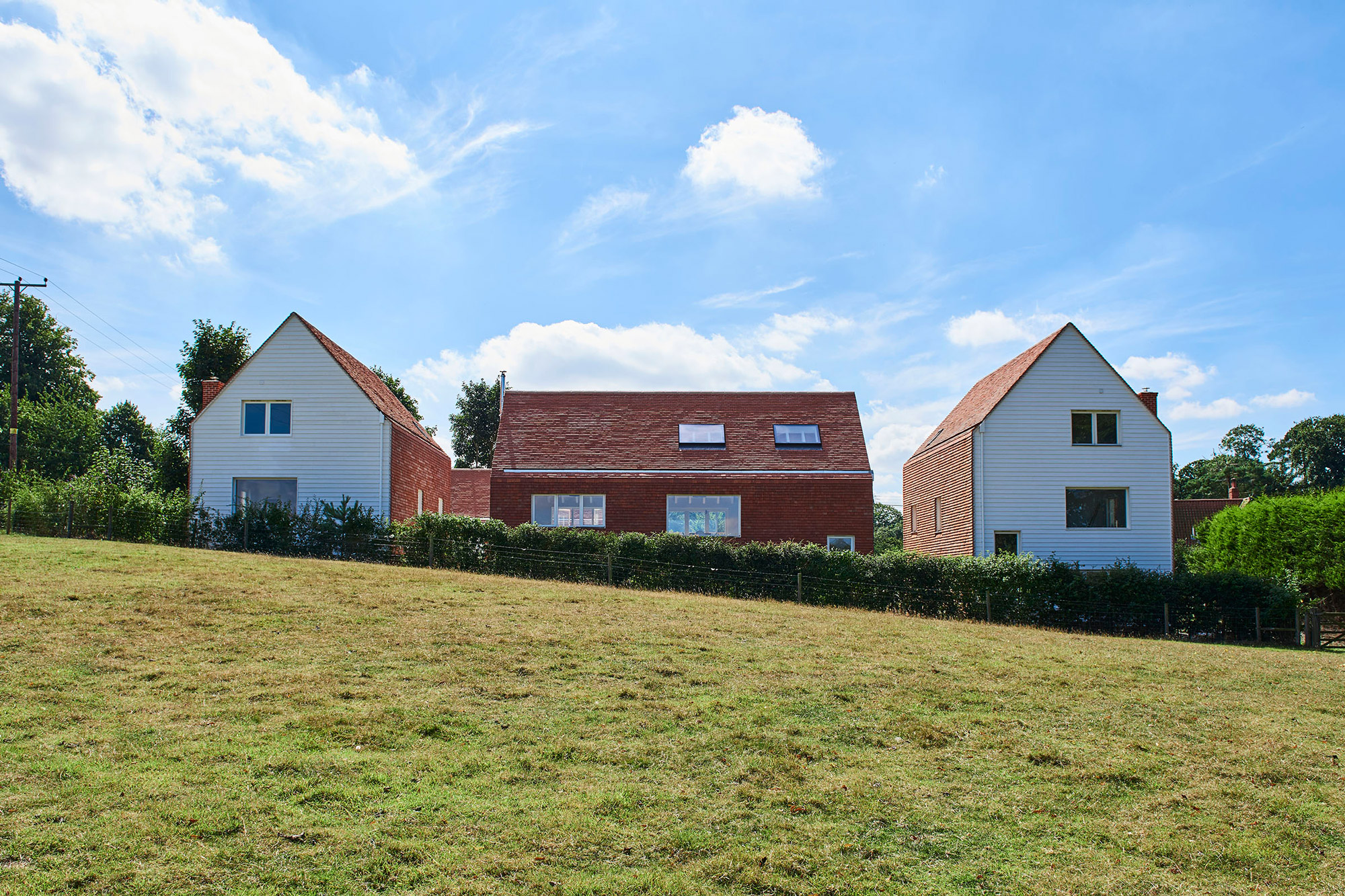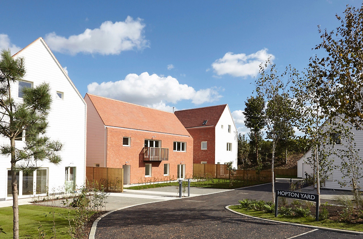Hopton Yard is a ‘close’ of 4 houses in a former gravel pit site in east Suffolk, for Nest Development. The topography of the site heavily influenced the design, as the northerly aspect presents expansive rural views over the surrounding water meadows, while the site itself is partly dug into the hill as a result of its former use.
