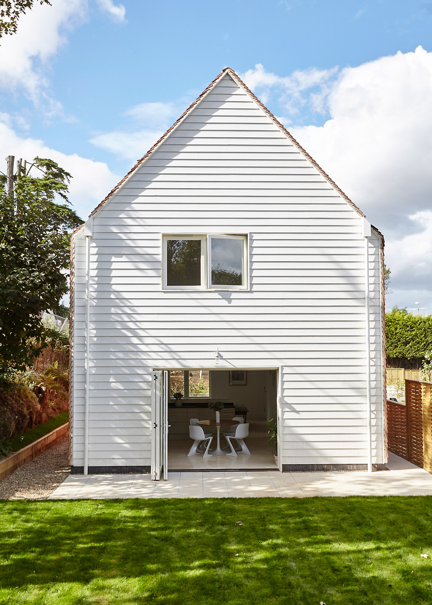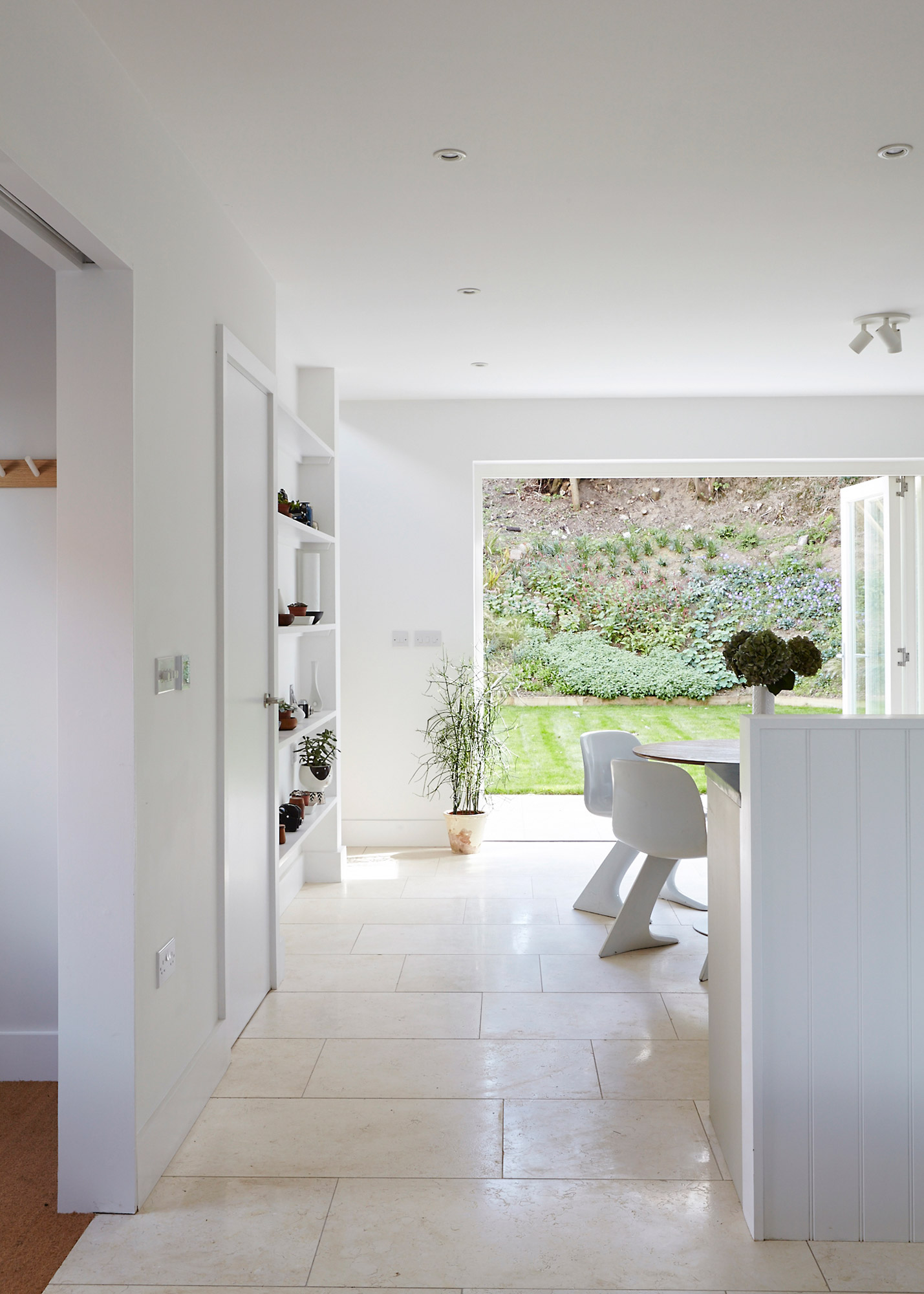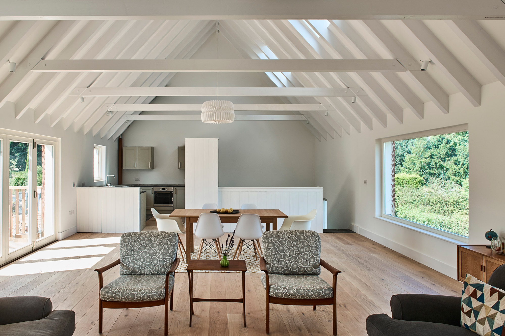 The four houses each respond to this setting in individual ways - in particular, maximising the views over to the north through first floor living spaces in each of the three dwellings on that side of the site. South-facing gardens sit between the houses and the shared driveway, creating a more layered and private relationship between the public and domestic spaces. Native hedging softens the parking and garden edges, and there is a fruit tree in each garden, and specifically chosen plants for the steep banks.