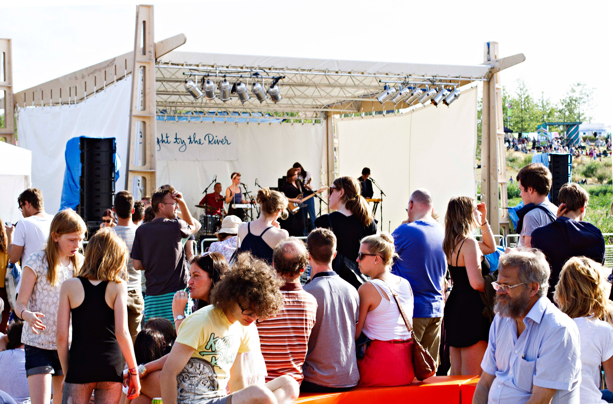 HAT Projects won a competition to create new demountable shelters and seating for the reopening of the Queen Elizabeth Olympic Park in July 2013. Debuting at the Open East Festival, they have also been used for subsequent Park events including the Paralympics Festival.