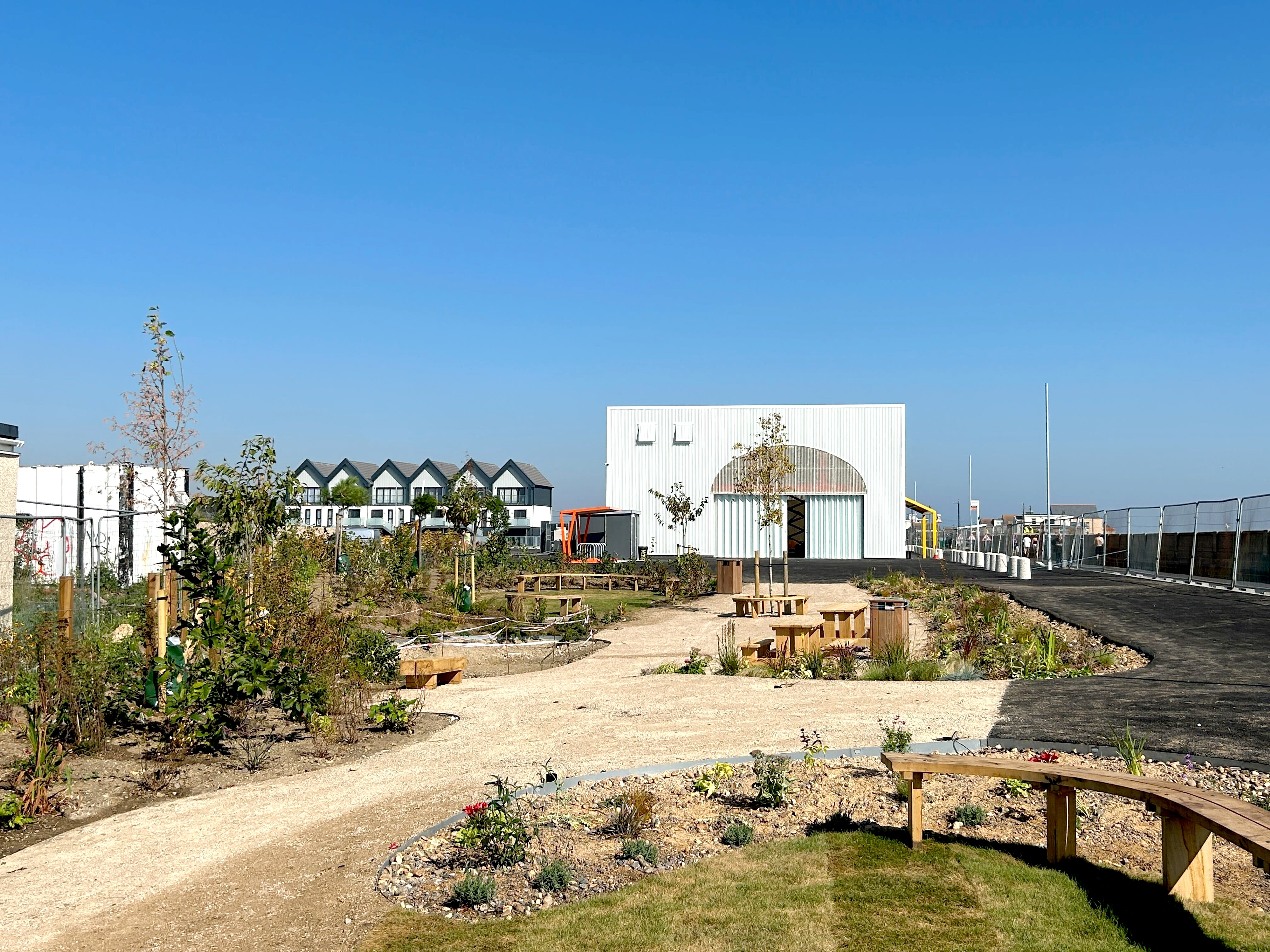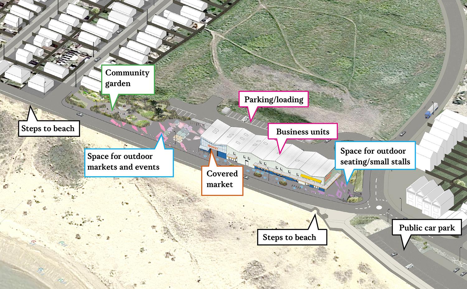 Sunspot is a major new project on the seafront at Jaywick Sands in Essex, contributing to the wider Jaywick Sands Place Plan which we are also developing. The project - completed in September 2023 - includes affordable business units, covered market, café, public toilets and meeting rooms alongside a community garden, bus shelter and event space.
