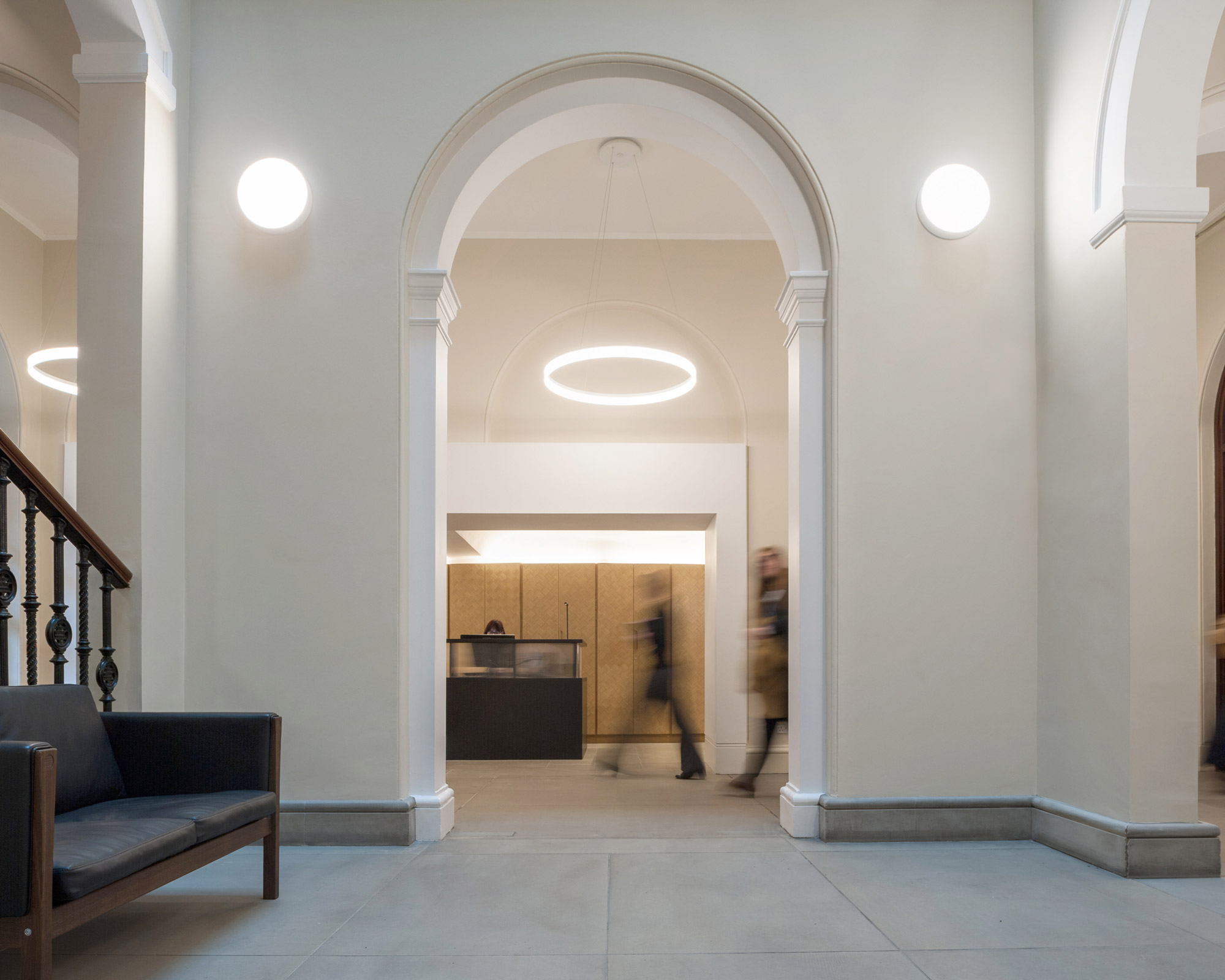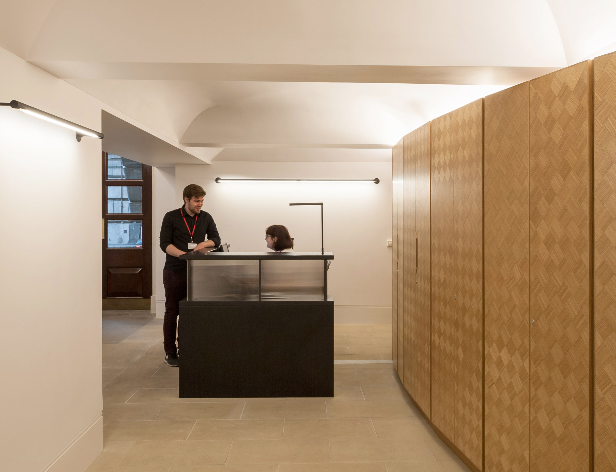 The new space has gently vaulted ceilings to create the impression of height, and a curve of bespoke veneered cupboards, with careful lighting and restoration of historic stone and fibrous plasterwork. Creating a large new structural opening under one of the main galleries involved detailed work to ensure the listed fabric was protected, and all the work was undertaken while the existing reception remained open throughout. The project was completed without a hitch, on time and budget, and has transformed this area of the Museum into a beautifully crafted welcome.