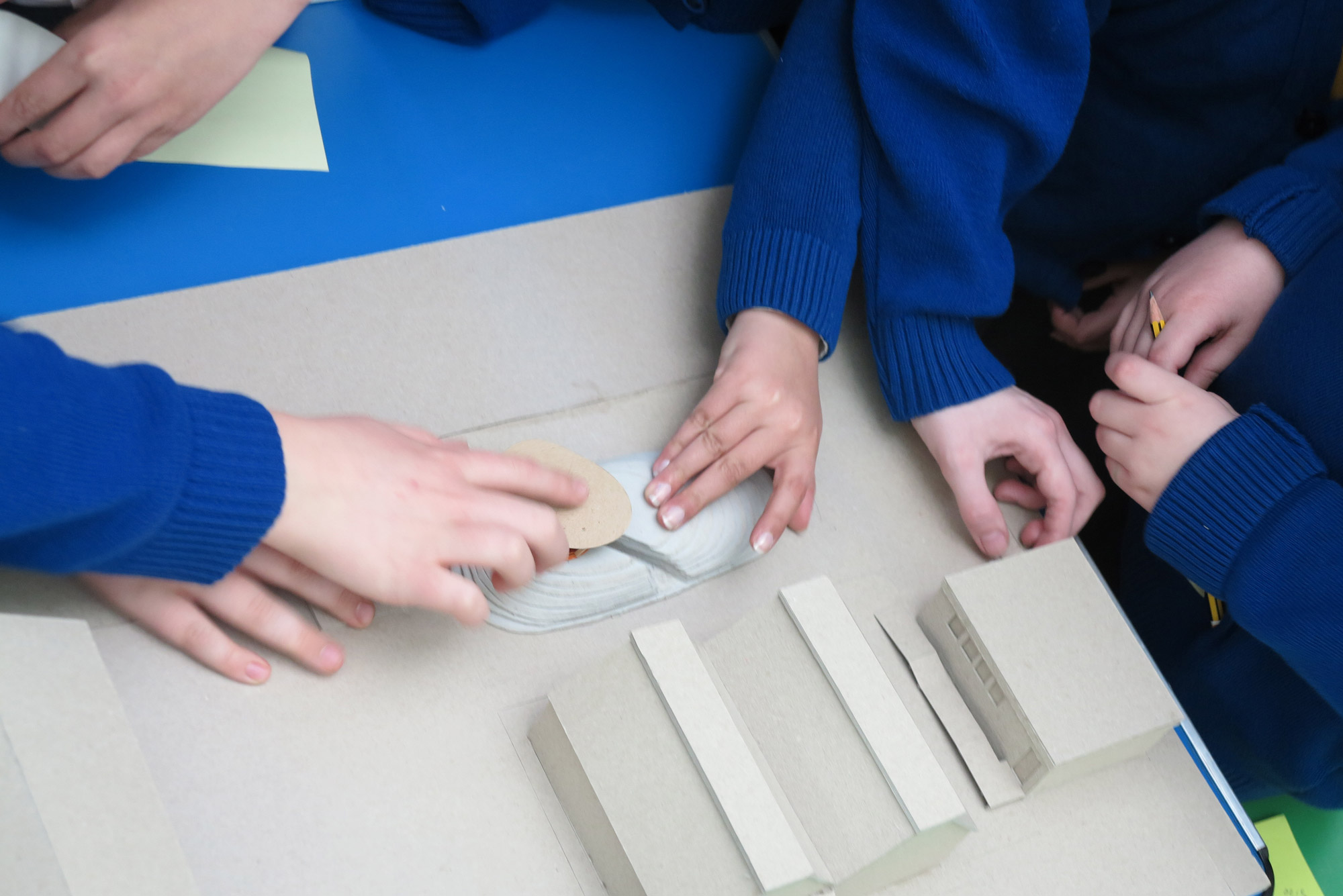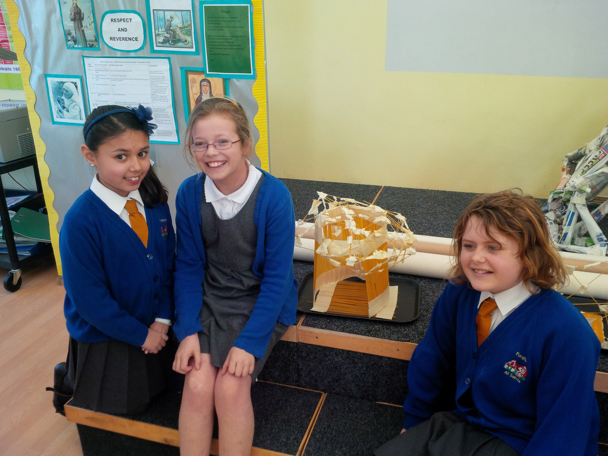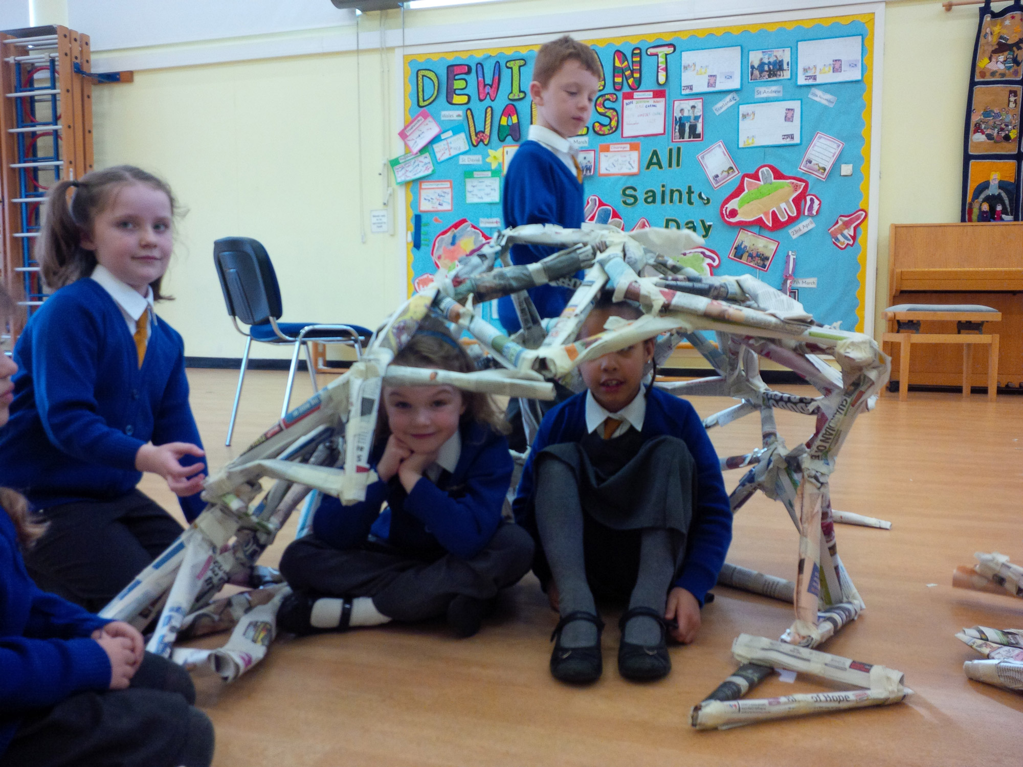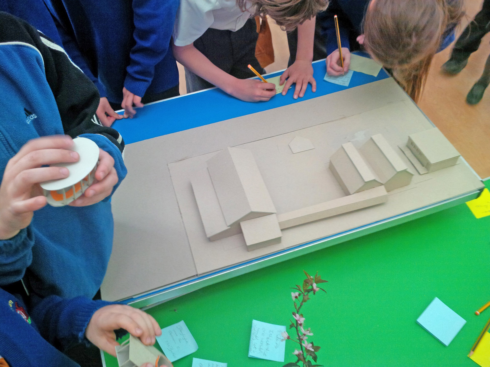 We explored ideas about structure and form in the first workshop, through building big structures from newspaper and spindly structures from spaghetti. After the half-term homework project, we took ideas from the children's designs and developed a series of different options for the classroom that responded to some of their themes. We brought these in model form into school and held a feedback day where the children told us what they thought of the options.