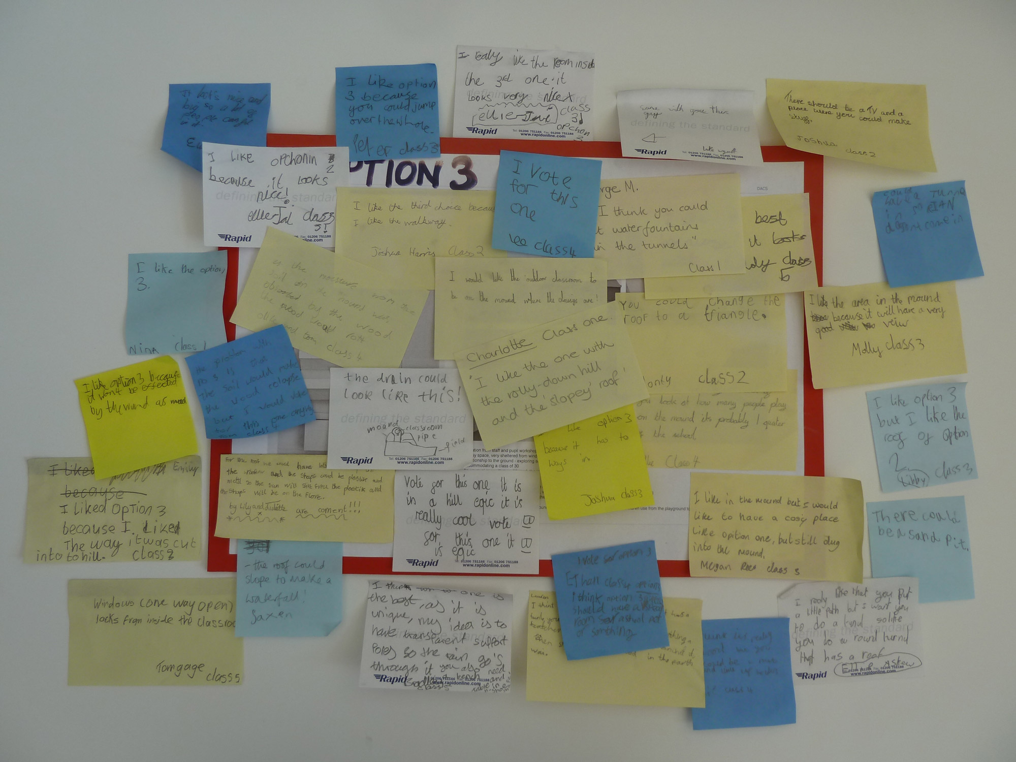 They chose a form that was partially embedded into an existing earth mound on the site, creating an interesting interplay of levels that suggested many ways of playing on and around it. The comments received were brilliantly perceptive and clearly expressed - a model that many adults could learn from!