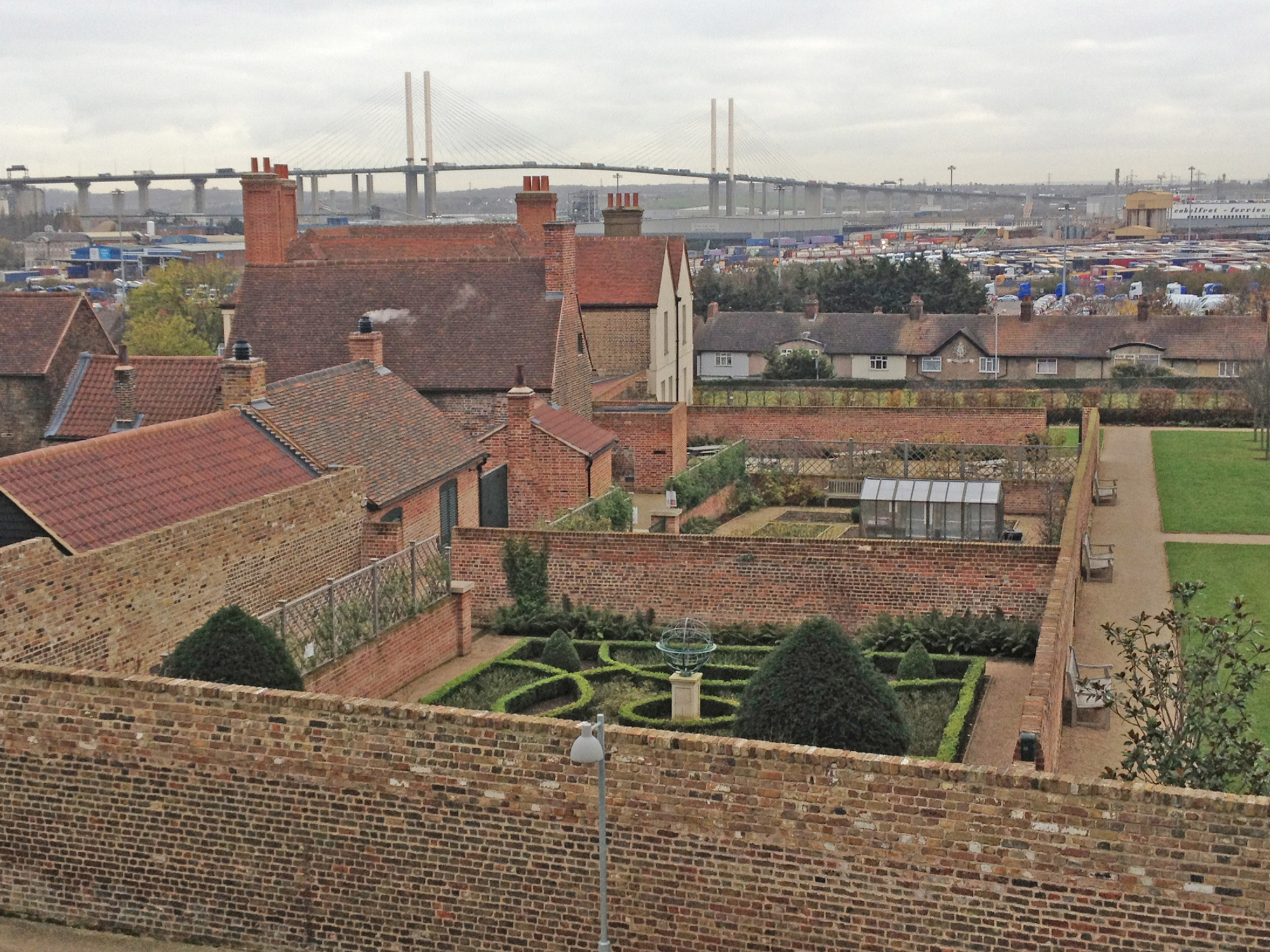 High House farm was a collection derelict, but important, historic buildings and the remains of a grand walled garden, that had become marooned on the outskirts of Purfleet, between the A13, M25, the distribution depots and warehouses of the motorway fringe, and the housing and industry of Purfleet itself. A community group had been formed to try to save and restore the buildings but a viable plan for the site was difficult to come by. (Interestingly, during this period Hana was involved with the Visionary Thurrock project that proposed alternative culturally led futures for Thurrock, and worked with the High House community group).